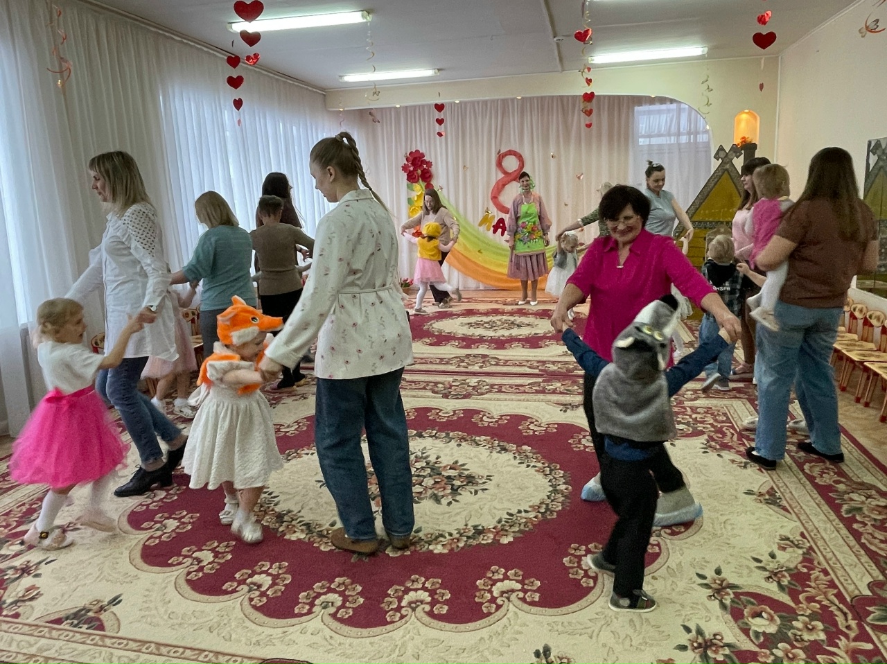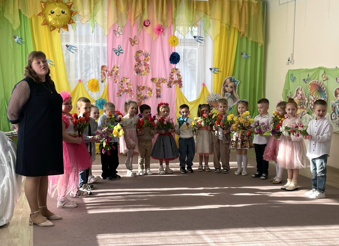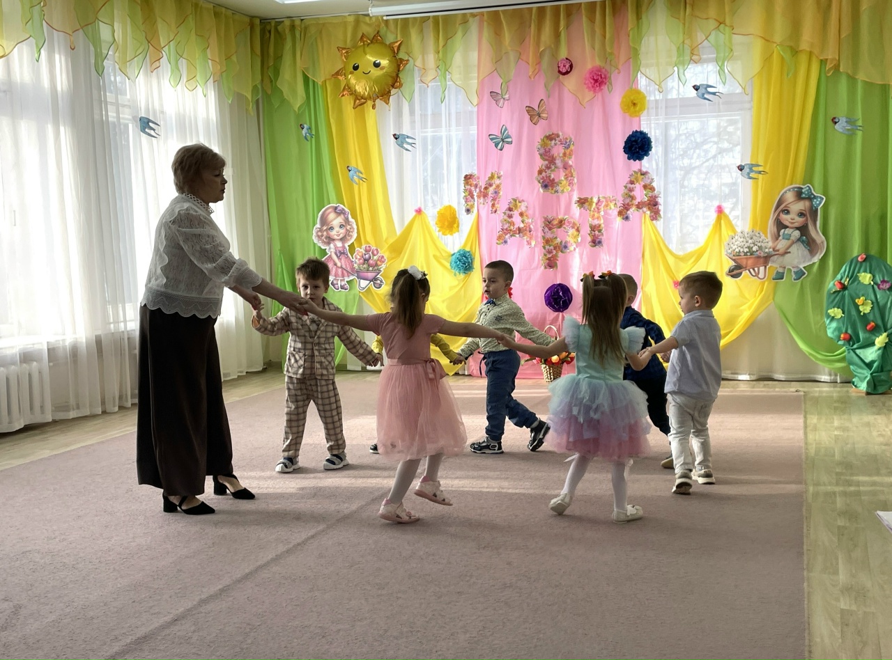 Яркие танцы с "цветными горошинами" и весенними цветами сменялись трогательными песнями о любимых мамах и бабушках. А игры с мамами добавили празднику атмосферу семейного тепла.